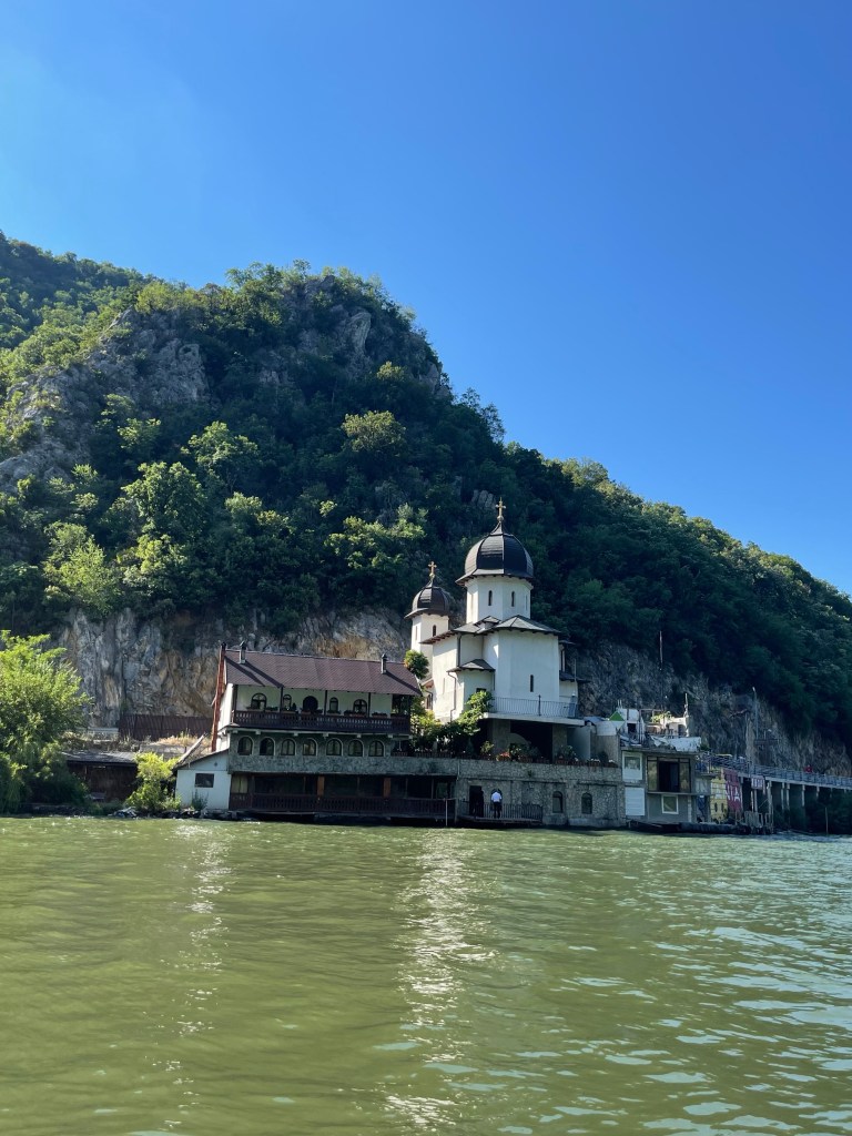 Waar de weg al een indrukwekkend uitzicht geeft op de Danuv (Donau) is deze van op het water nog machtiger.