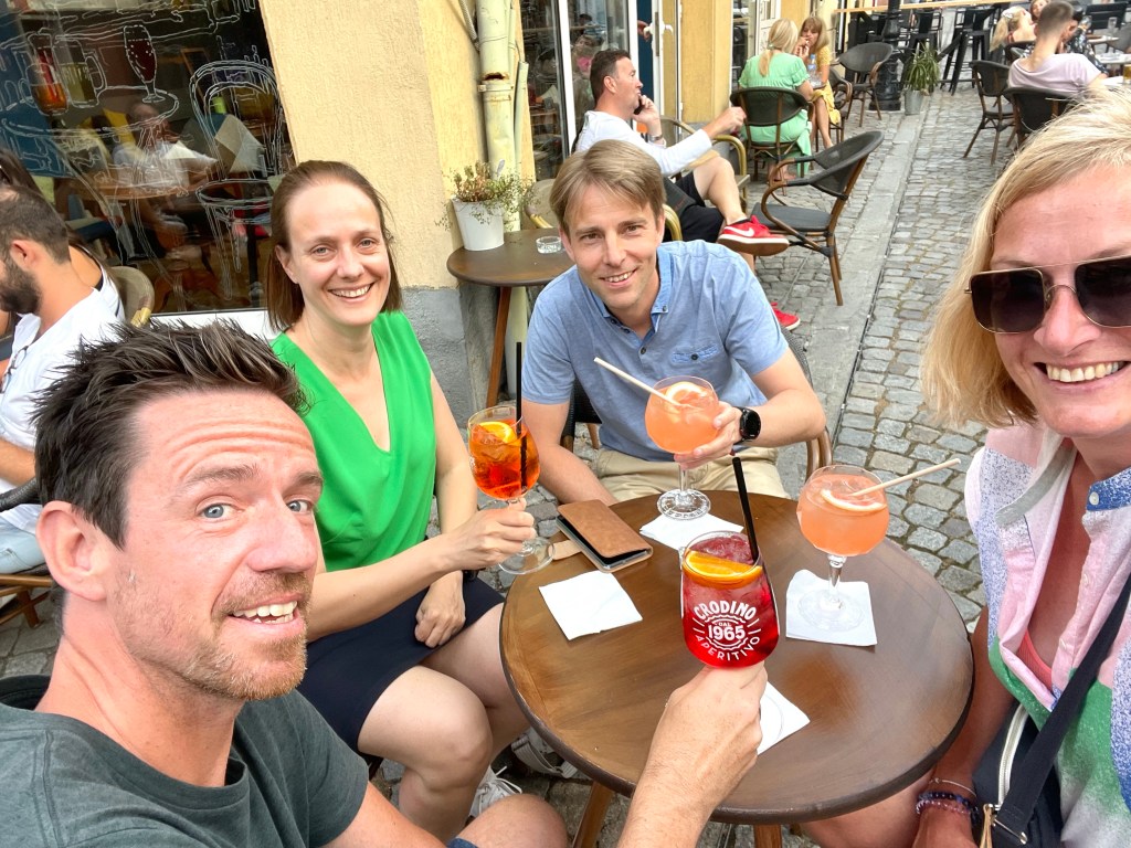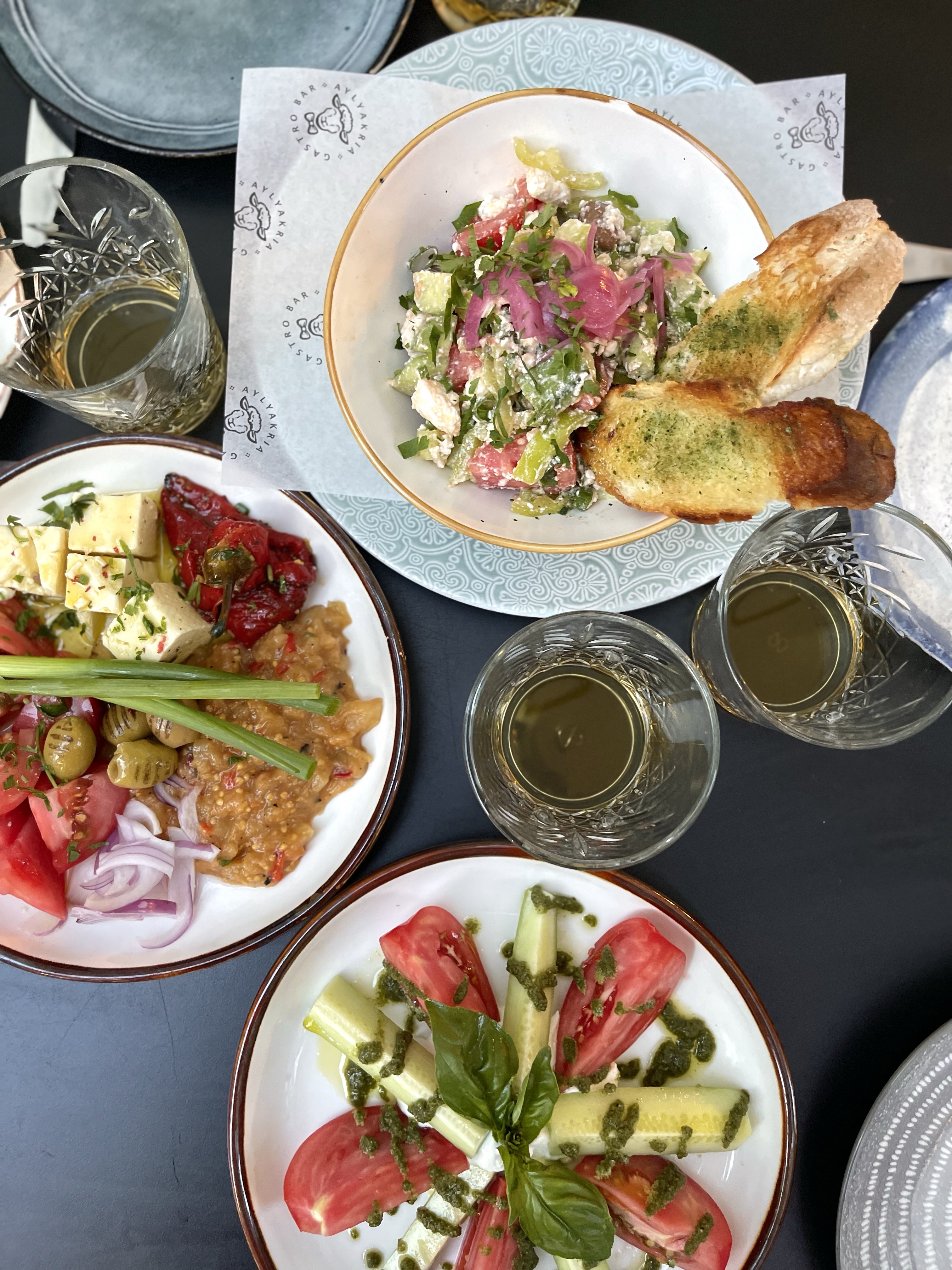 Onze tweede avond laten we ons adviseren door Elin. De Bulgaren starten traditioneel hun diner met salade en Rakia. Lekker!