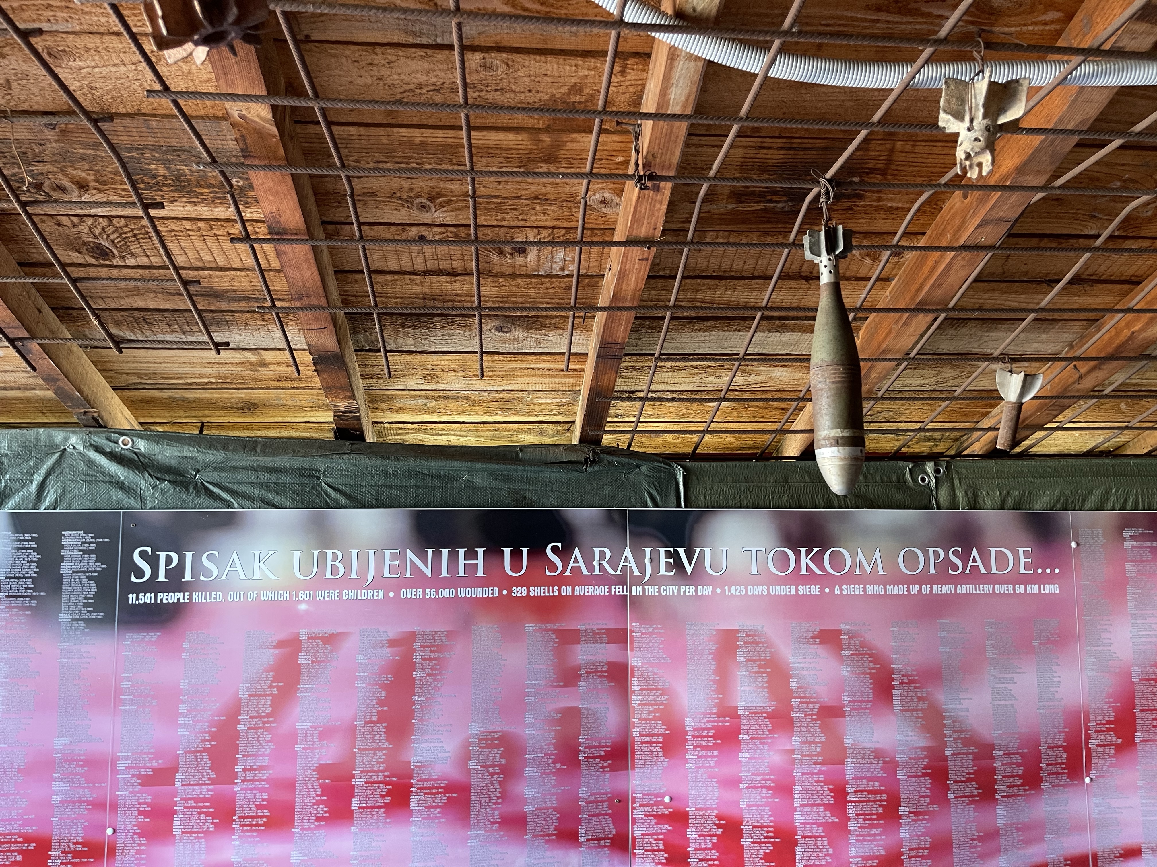 Verder naar de Tunnel of Hope, een museum aan de rand van de stad. Tijdens de burgeroorlog was deze tunnel de enige verbinding tussen de stad en de rest van de wereld. Het centrum van Sarajevo ligt in een dal en vanop letterlijk elke bergflank werden ze onder vuur genomen. Gemiddeld 329 inslagen per dag. De ingang van de tunnel ligt dicht bij de luchthaven, is UN grondgebied en werd daardoor gevrijwaard van vijandig vuur. De tunnel is 1m breed, amper 1m60 hoog en 400m lang.
