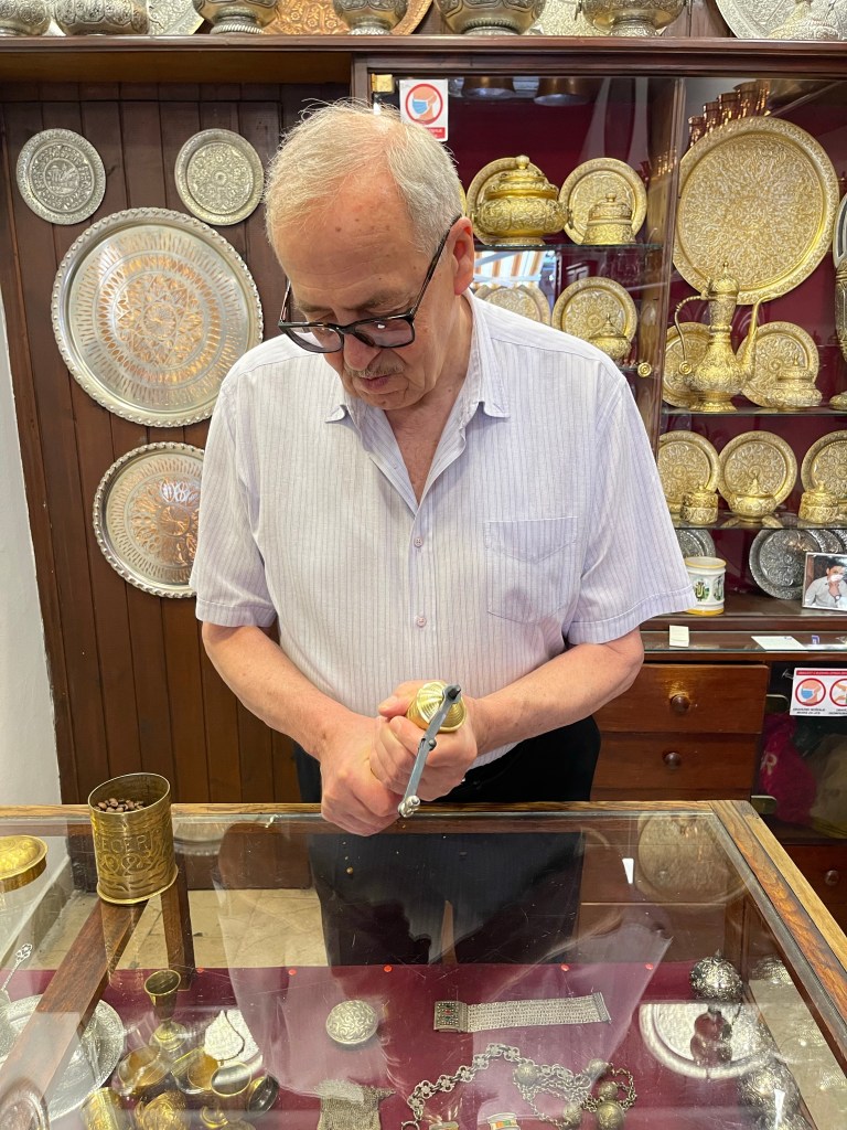 Na de rondleiding struinen we zelf nog even verder door de stad. In het ambachtenstraatje (het enige dat nog overleeft) kopen we een prachtige koperen handbeslagen koffiemolen.