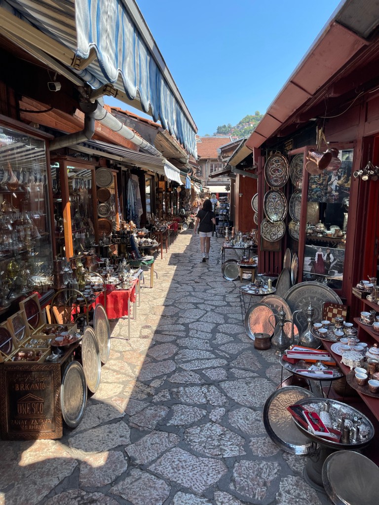 Niet meteen in de top 10 van te bezoeken steden bij velen. Het stond alvast niet in de onze. Maar we zijn meer dan aangenaam verrast. We boeken alweer een freetour maar eerst ontbijten we in de stad. Het is 9u30 wanneer we in het centrum aankomen en we worden instant verliefd op de gezellige drukte die er heerst. Tenminste wanneer Steven zijn woede een beetje gekoeld is. Ik zie jullie allemaal ogen trekken…maar rij niet tegen zijn kar. 😉 Letterlijk in deze. Bij het oprijden van de parking steekt een ongeduldige Bosniak achter ons voor en geeft Lowie een zachte tik op zijn kaak. Het is vooral de ontkenning die de woede veroorzaakt maar uiteindelijk zakt ze snel en Lowie komt er van af met een lichte schram.