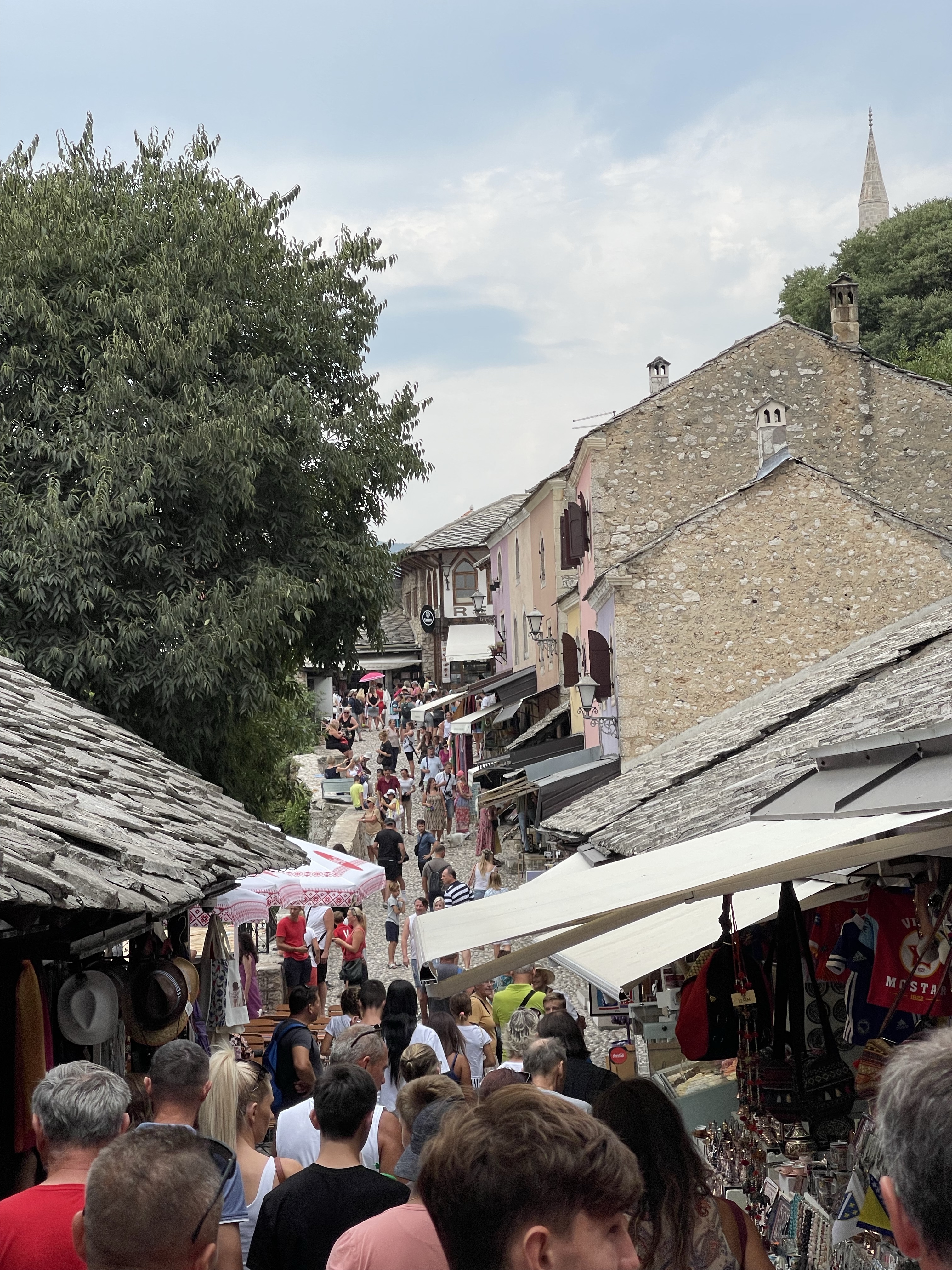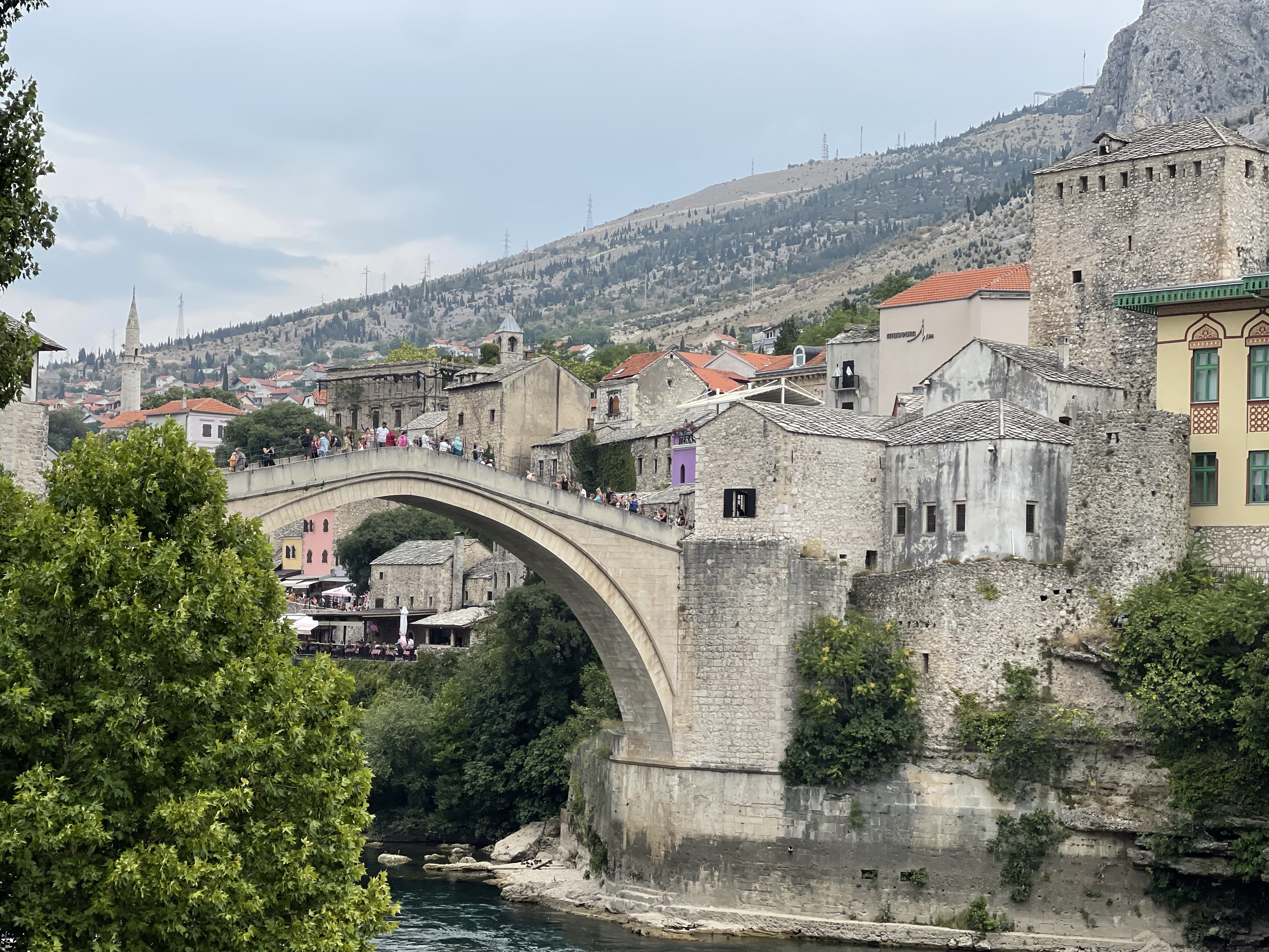Als eerste Mostar. We zijn niet de enigen. Massatoerisme. 😱 Geld betalen om iemand van een brug te zien springen!? Opnieuw, ieder zijn ding maar duidelijk niet het onze. Mostar is wel een klein gezellig stadje, we wandelen wat door de straatjes en genieten van een koffietje met uitzicht op de stad.