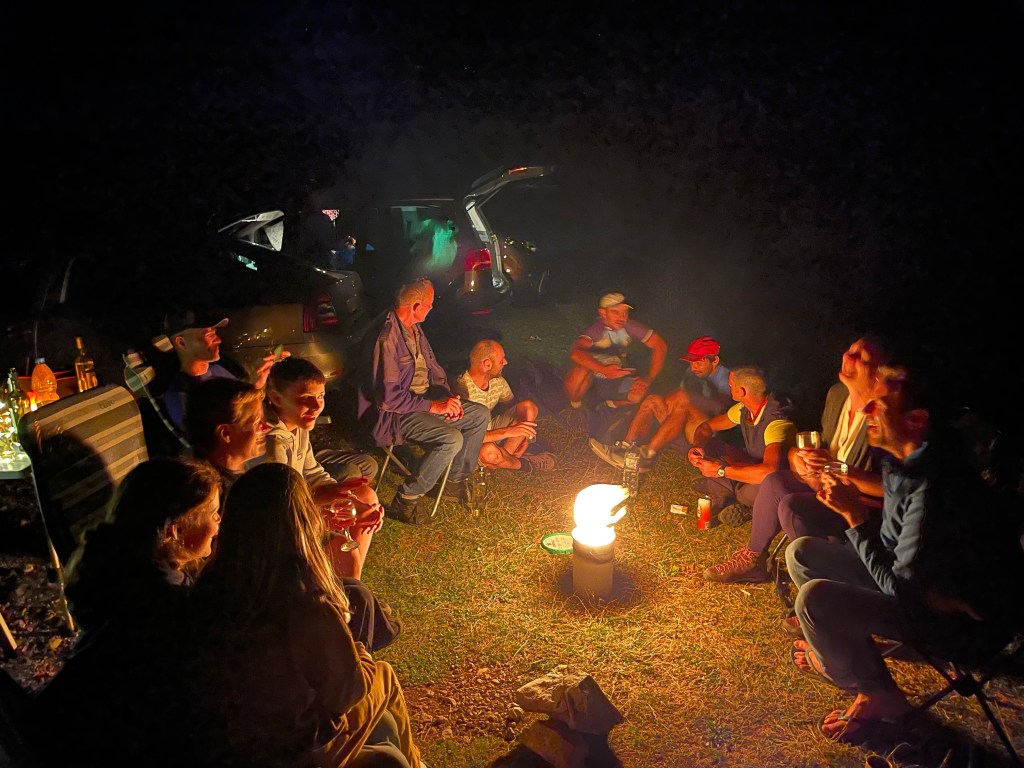 Een beetje later botsen we op twee toffe Belgische gezinnen en nog later op de avond voegen zich nog 4 locals bij de kring rond het vuur. Het wordt weer een zeer gezellige avond (met veel wijn en schnaps). 😇🤩