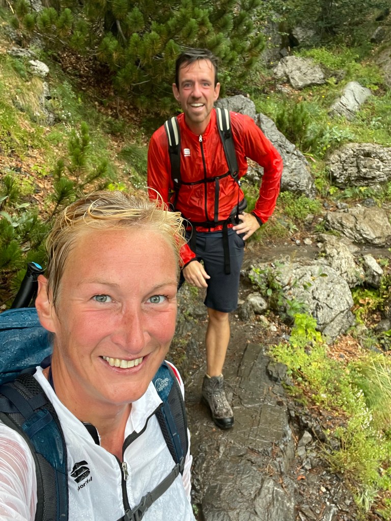 Ze voorspellen storm de volgende dag dus we boeken een ‘taxi’ om ons naar de voet van de berg te brengen. Om tijd te winnen. We starten meteen met klimmen. De Albanese ‘Frank’ had zich echter anderhalf uur vergist en we eindigen alsnog in de gietende regen. Gelukkig net wanneer we de pas over zijn. In het oog van de storm wil je je niet op het hoogste punt bevinden. 😅
