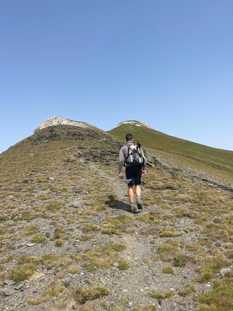 De 18km werden er uiteindelijk 22. Minder toeristisch (lees: we waren, op een groepje Italianen na, de enigen) wil ook zeggen; minder goede aanwijzingen. En die apps zijn fantastisch maar ook niet feilloos. De top bereikten we zonder enig probleem. Het dalen was soms wat natte vingerwerk. En waar ik na 2 km in de afdaling dacht, ‘we zijn goed vertrokken’, kwam de uitspraak: “lap, het beste is er af voor vandaag” en de eerste struikeling was daar. Nog 10km te gaan. 😅 “Kunnen ze die paden niet breder maken!?” “Hoe ver is het nog?” (Om de km 😁) “Kunnen ze hier geen rechte stukken in steken!?”