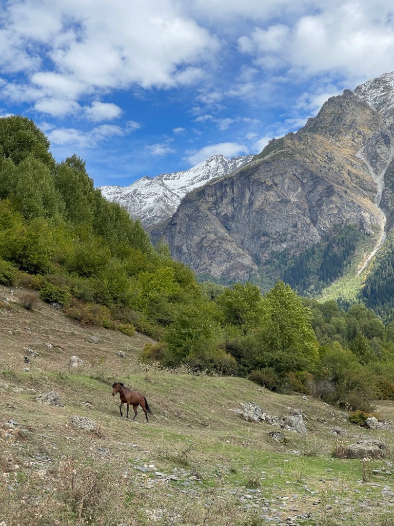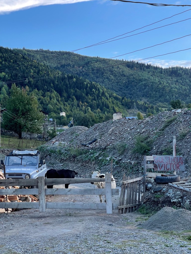 We parkeren Lowie in het centrum, nemen een ontbijt in Erti Kava (een leuke plek maar hier kennen ze de prijzen wel) en beginnen aan de eerste tocht. Bestemming Zhabeshi. Stralend weer, prachtige landschappen. Niet altijd even duidelijke paden maar met behulp van de app Outdooractive geraken we op onze bestemming. Die avond slapen we in Guesthouse Victor.