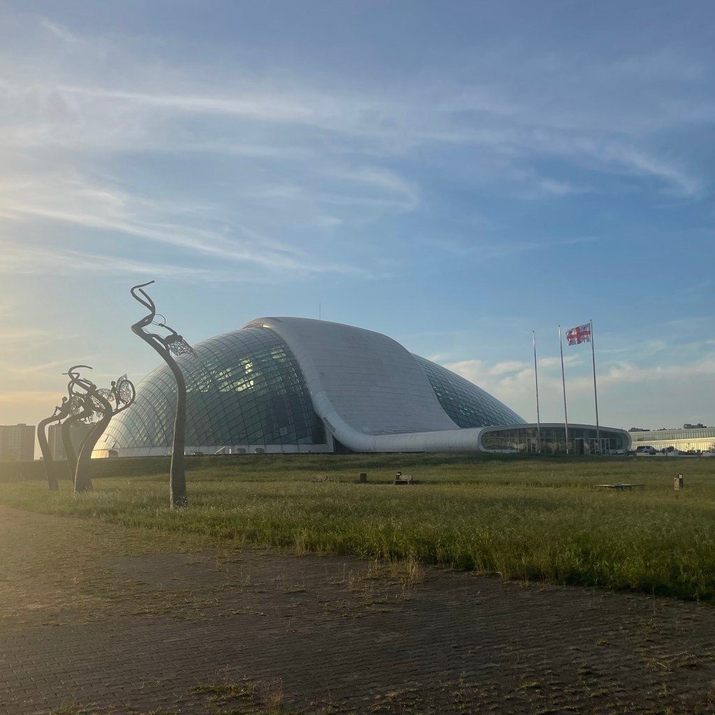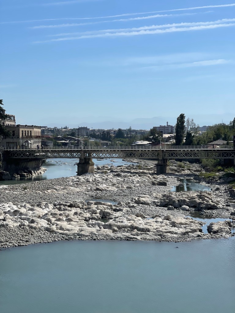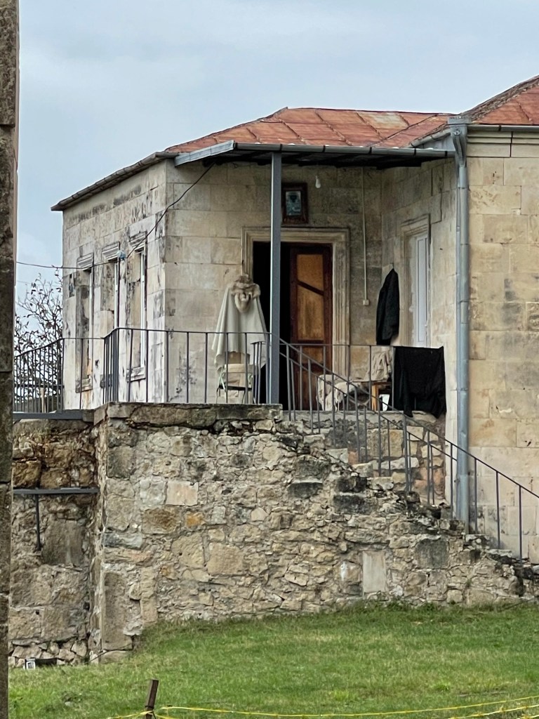 We nemen de Marshrutka terug naar de stad en nemen een taxi naar het ‘oude’ parlementsgebouw. Gebouwd in 2011-2012, in gebruik tot amper 2019, dan verhuisde het parlement opnieuw naar de hoofdstad Tbilisi.