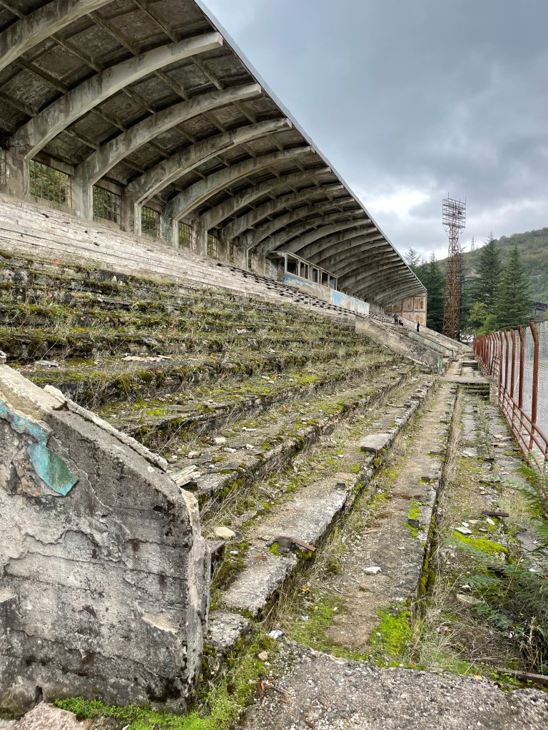 Na dit bezoek gaan we op jacht naar meer vervallen Sovjet pareltjes. De tribune van het voetbalstadion is daar een van maar ook de, over de stad verspreide, oude kabelliften en hun stations (die werden gebruikt om de mijnwerkers sneller ter plaatse te krijgen) zijn tof om te zien. In 2017 kon je nog een ritje maken in deze roestige bakjes, nu staan ze op de Unesco lijst met immaterieel erfgoed.