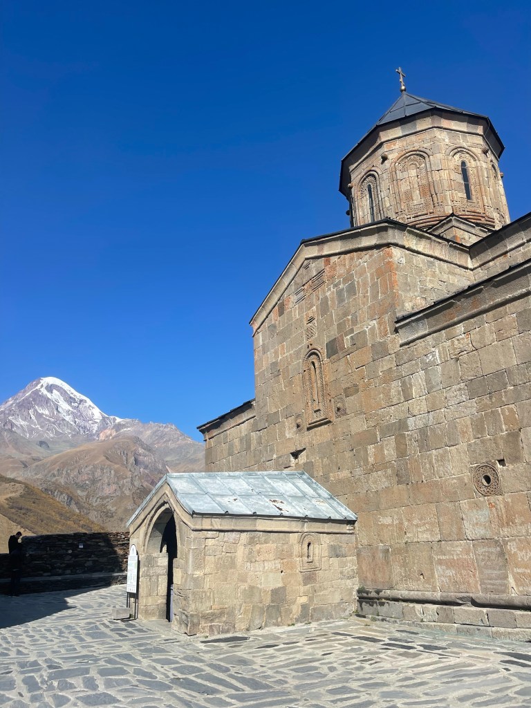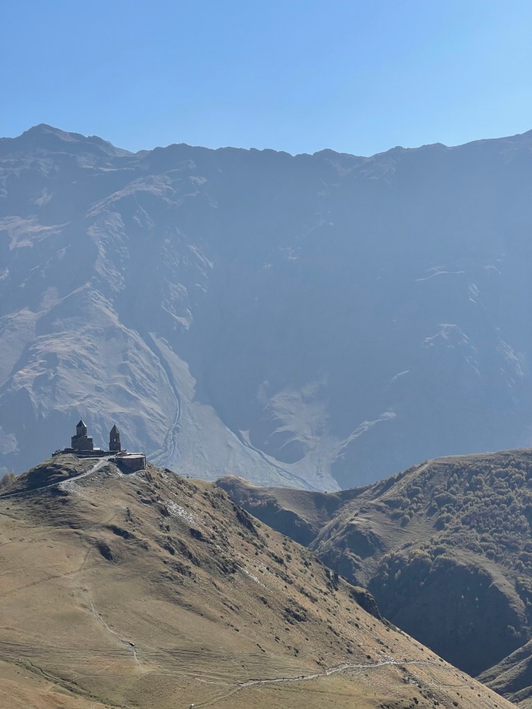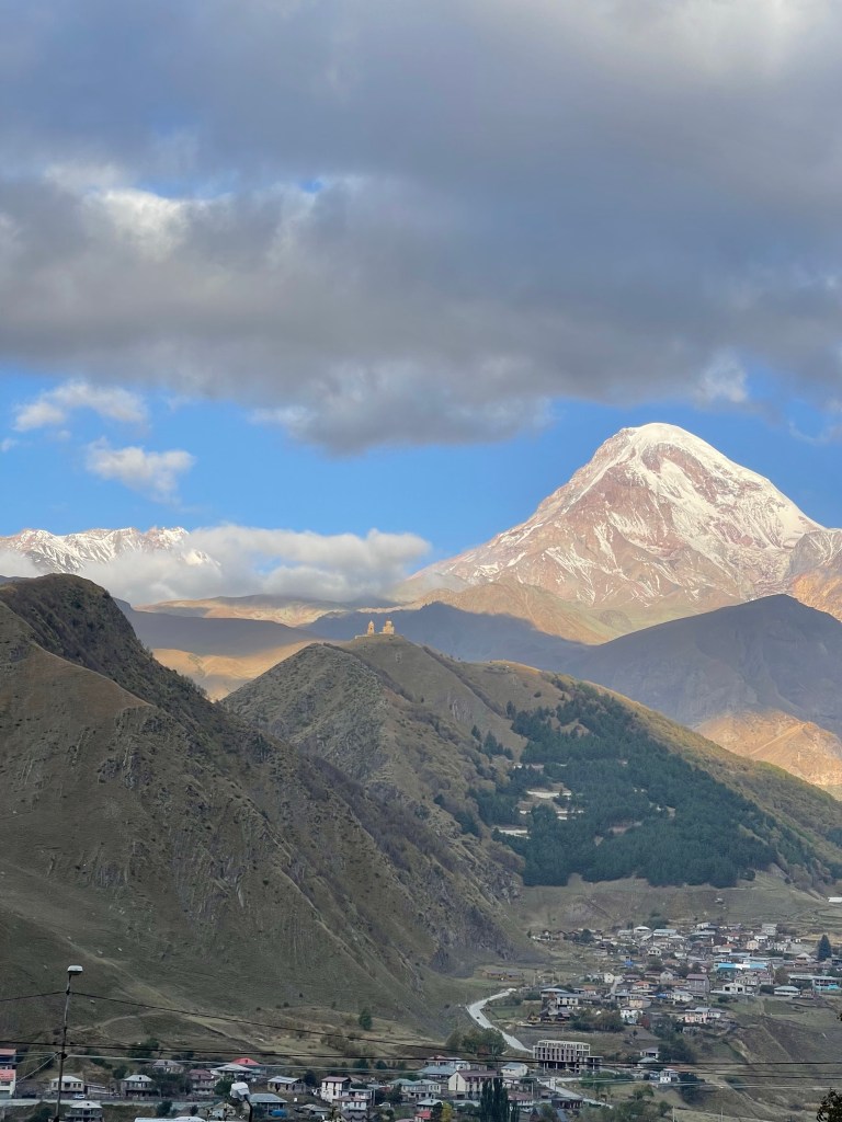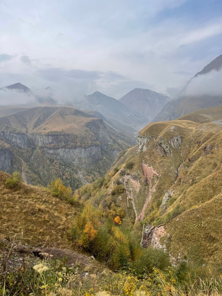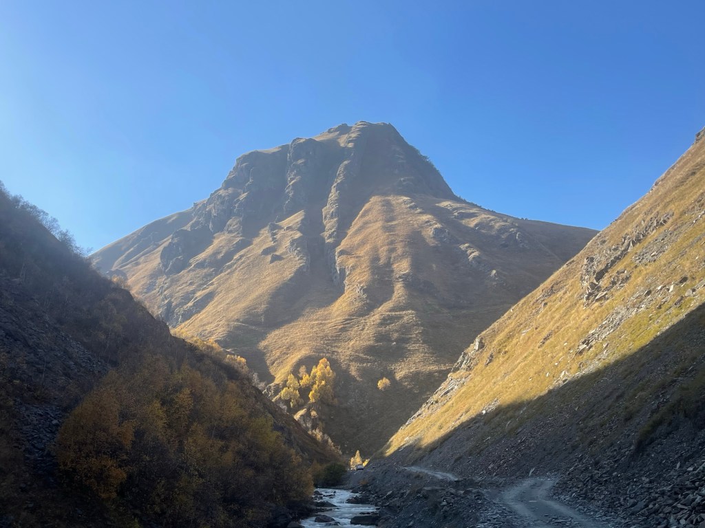 We rijden nog de Military Highway af tot bijna aan de Russische grens en bezoeken nog het afgelegen dorpje Juta. Op naar Tbilisi. Onderweg nog even een stop bij het Russisch-Georgische Vriendschap Monument…accurater dan ooit. De onderliggende vallei barst van de herfstkleuren. Prachtig, nog schoner in werkelijkheid!