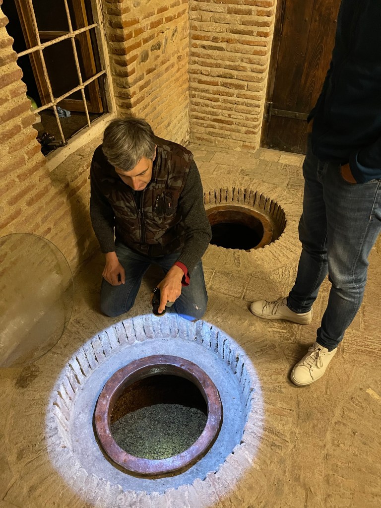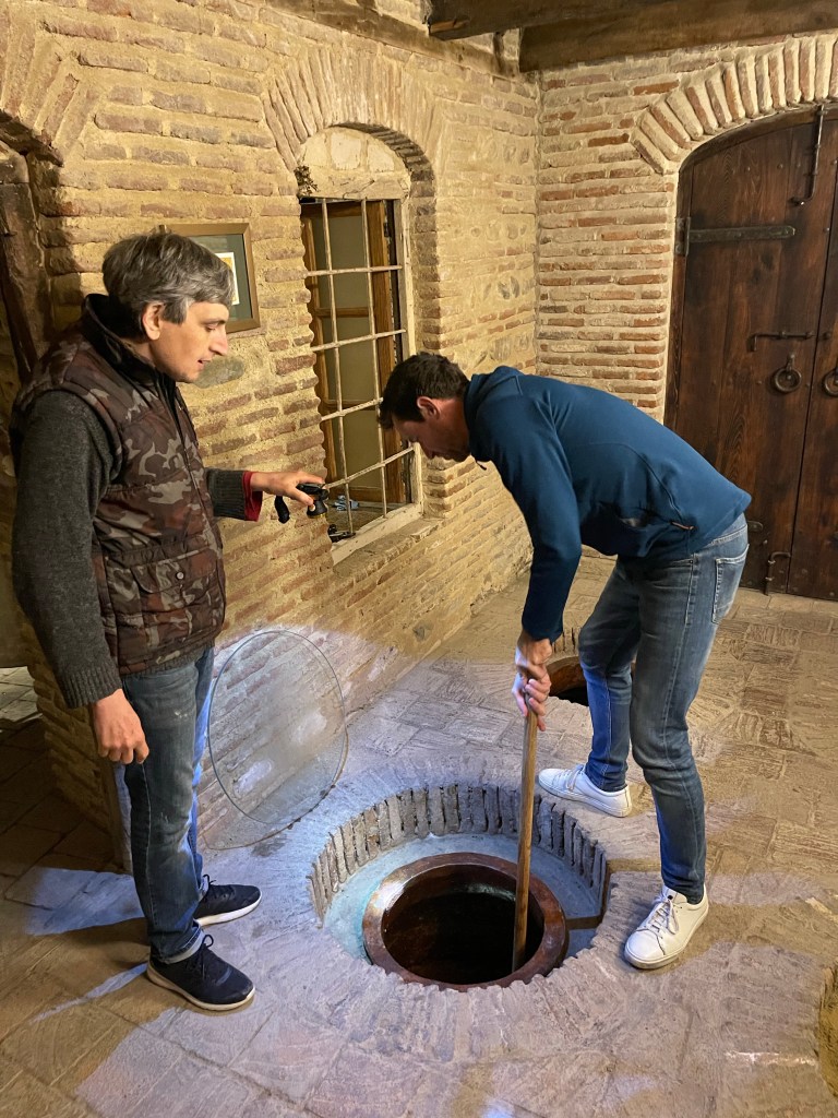 De volgende dag bezoeken we opnieuw 2 wijnmakers. Archil van Kerovani neemt uitgebreid de tijd voor ons. Hij heeft niet alleen een goeie neus voor wijn. Hij verbouwde zijn wijnkelder en degustatieruimte met smaak.