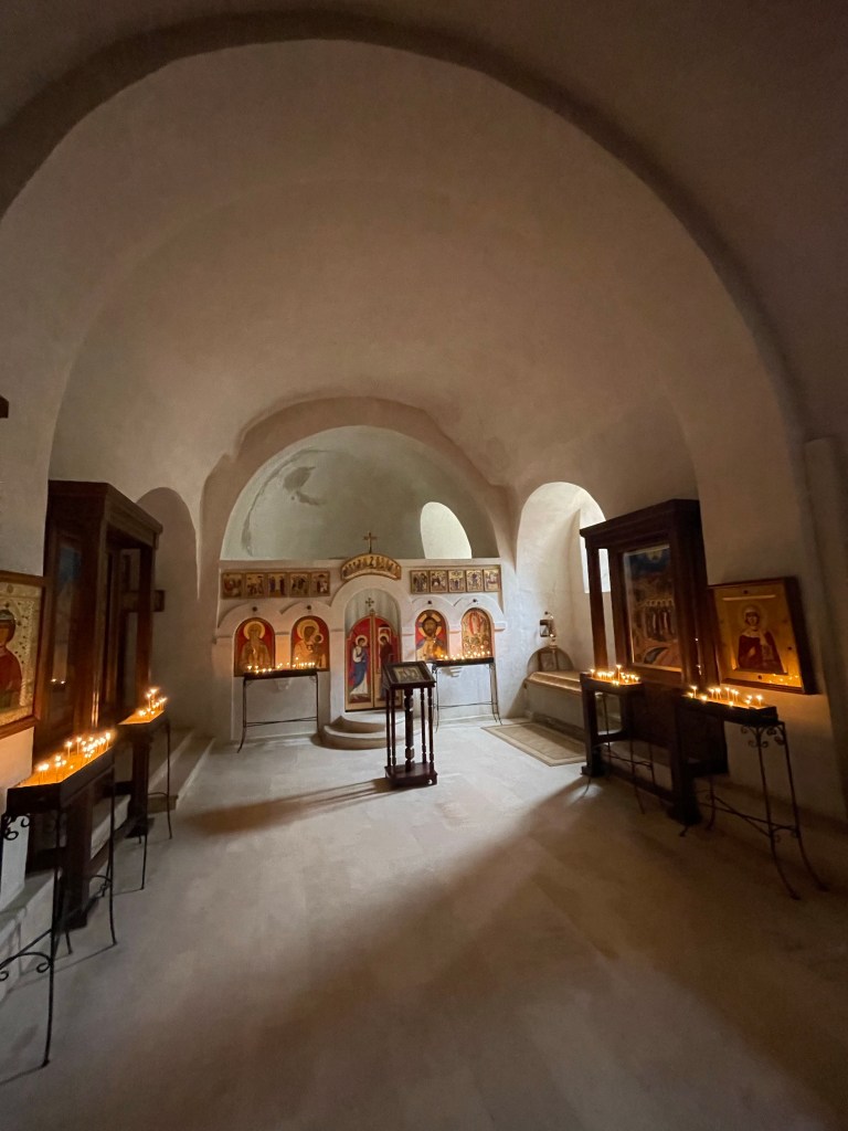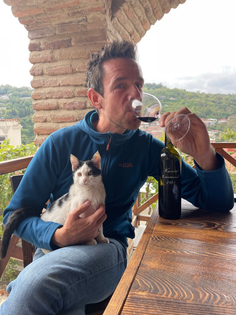 ‘s Avonds ontmoeten we twee Poolse vriendinnen die vol lof zijn over het David Gareja klooster, iets voorbij Udabno en vlak aan de grens met Azerbeidzjan. Even een wijn-pauze. 😇
