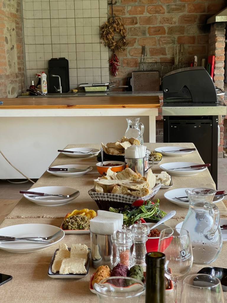 Opnieuw worden we zeer hartelijk ontvangen. De haard wordt aangestoken. Het is inderdaad wat frisjes maar al snel wordt duidelijk dat ook Ilias en diens broer eten voorzien hebben. 🙈 Veel te veel, veel te lekker en zoveel gastvrijheid kan je niet weigeren.