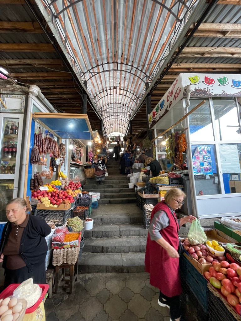De laatste dag van onze ‘wijnweek’ brengen we door in Telavi, op onze weg naar de Pankisi Vallei. Het is grijs en miezerig en we genieten van een dagje cocoonen in het Communal hotel. ‘s Ochtends nog een wandeling door de stad en op naar de volgende halte.