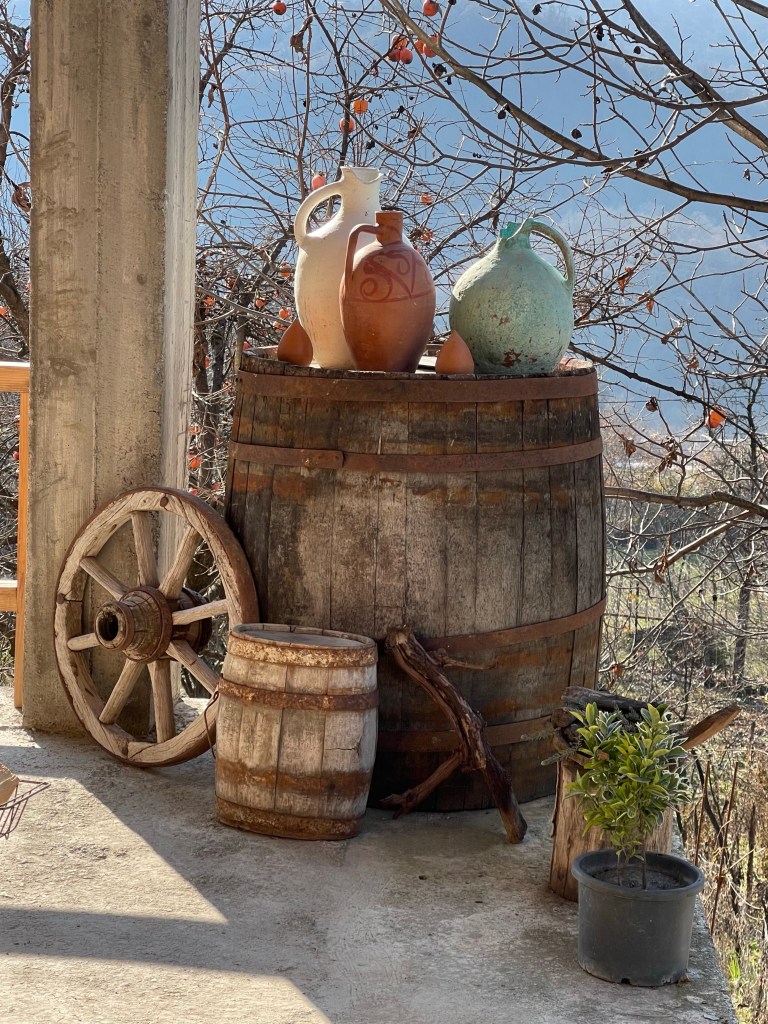 De eerste dag trekken we naar het westen. Het toeval wil dat de eerste wijnboer die we bezoeken de laatste was die we bezochten twee maand geleden. Door deze tasting en vooral de GMT (Georgian Maybe Time) reden we te laat de grens over en kregen we die boete. 🙄