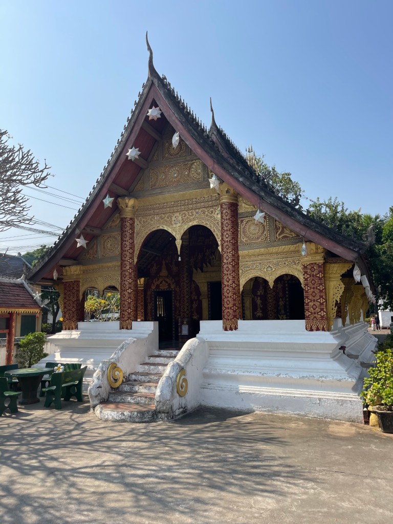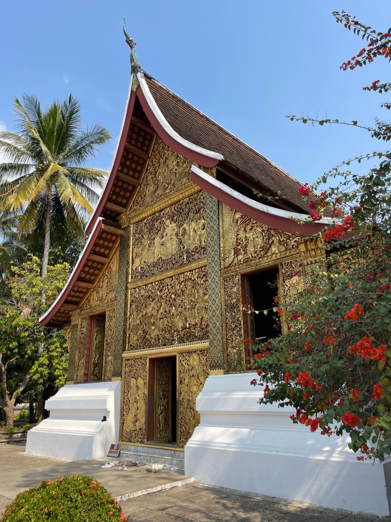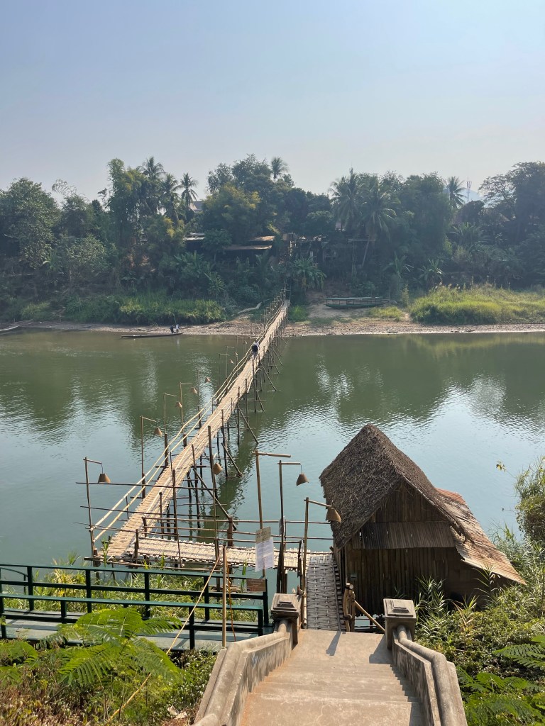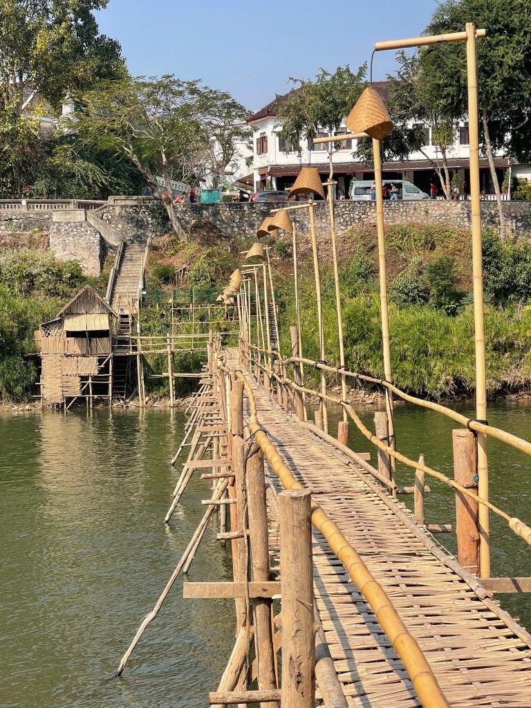 De volgende dag gaan we te voet op pad om de stad te verkennen. De bamboebrug (die elk jaar opnieuw gebouwd wordt omdat ze niet bestand is tegen de stroming van de rivier in het natte seizoen), Wat Sibounheuang, Wat Xiengthong met zijn prachtige glasmozaïeken, Mount Phu Si (de heuvel die in het midden van de stad ligt en een wijds uitzicht biedt op de stad) en geweldige shops met handgeweven textiel (The Weaving Sisters en Ock Pop Tok zijn absolute aanraders!).