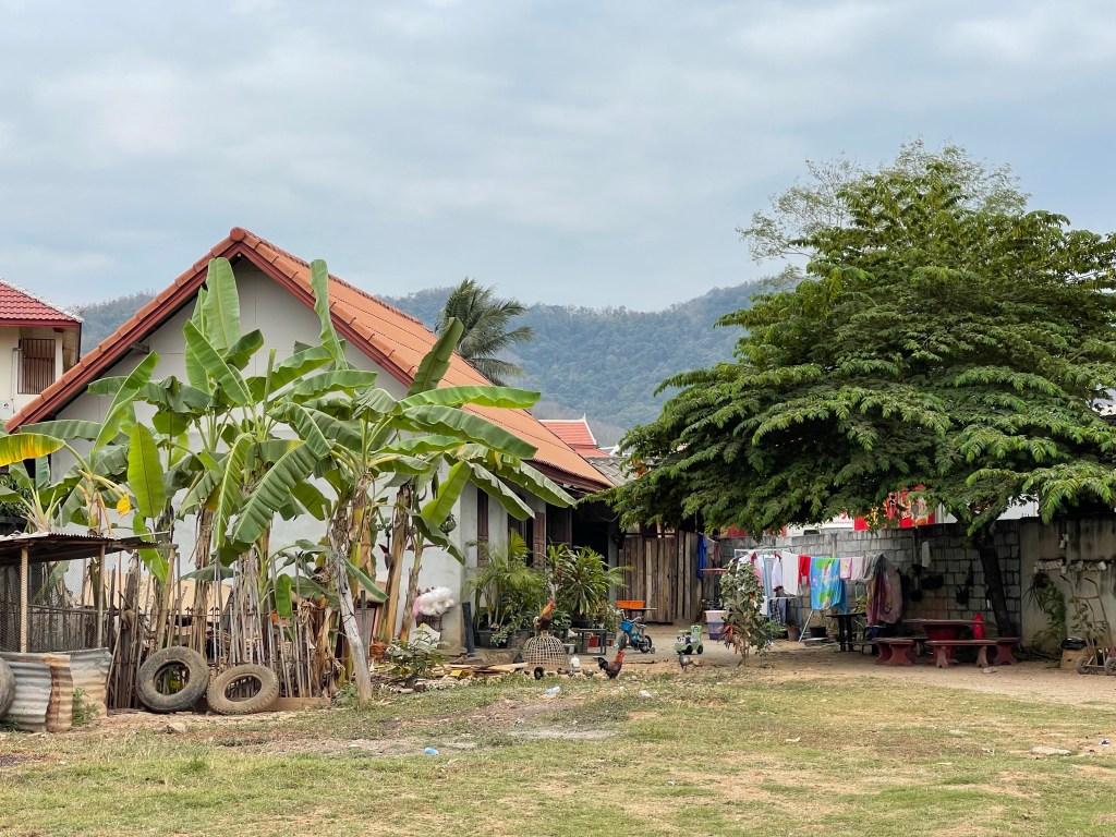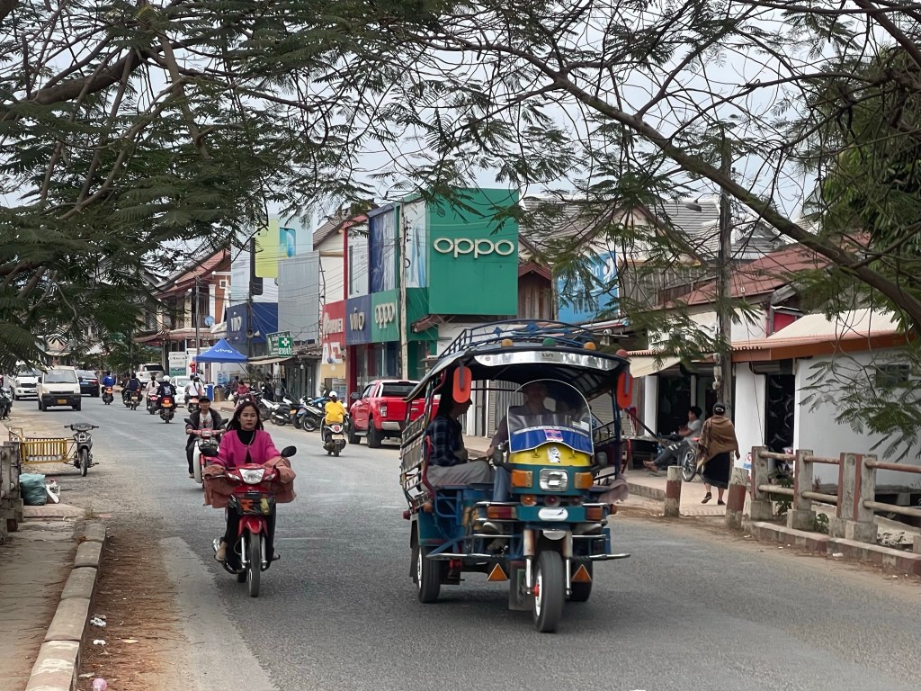 Amper de grens over en meteen een heel andere sfeer. Veel relaxter. We like! En hoewel dit stadje leeft van toerisme (belangrijke verbinding tussen Thailand & Laos), ze praten hier amper een woord Engels en het is verre van volgepakt.