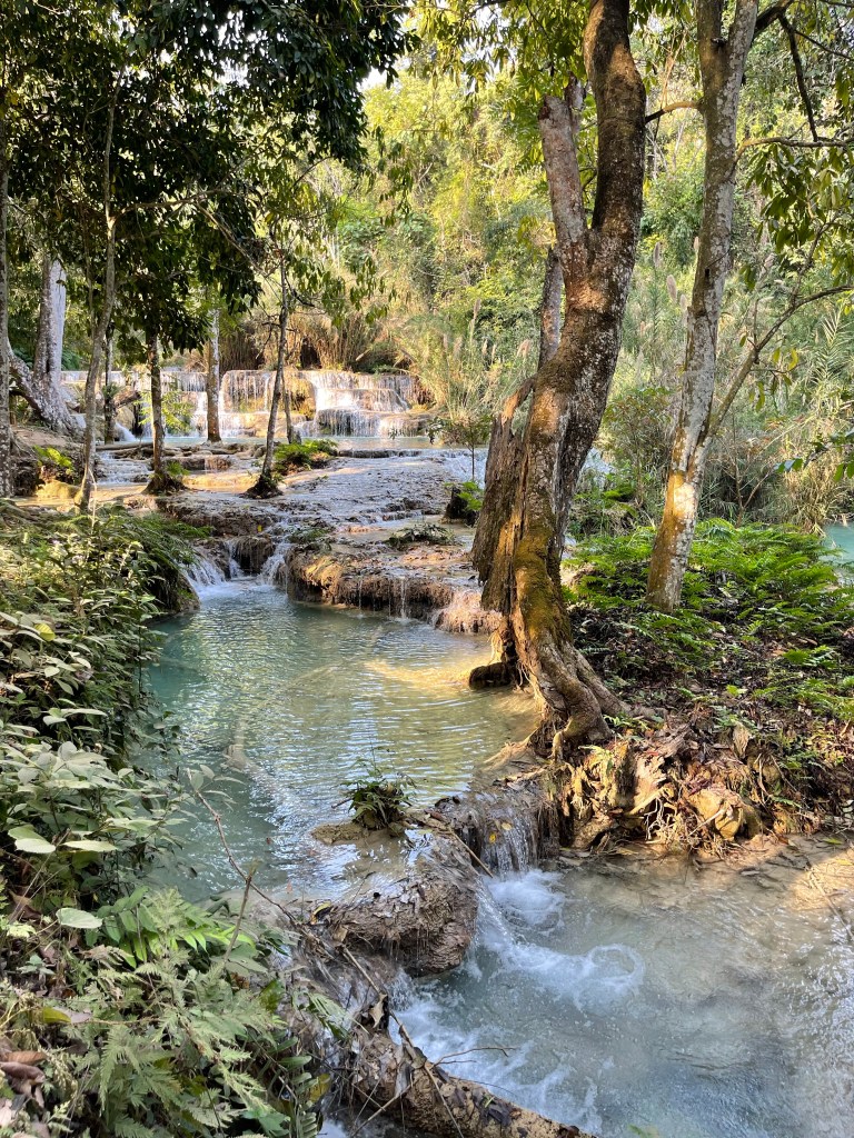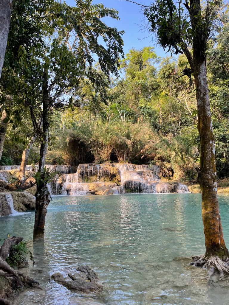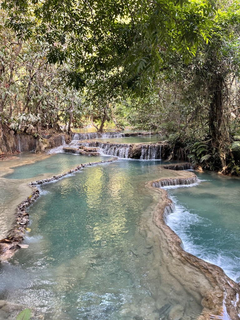Het vroege opstaan was ook in functie van ons bezoek aan de Kuang Si Waterval. We willen de massa te slim af zijn en arriveren amper een half uur na opening aan de waterval. Een handvol andere bezoekers, zo hebben we het graag. Hoe magisch mooi is ze!