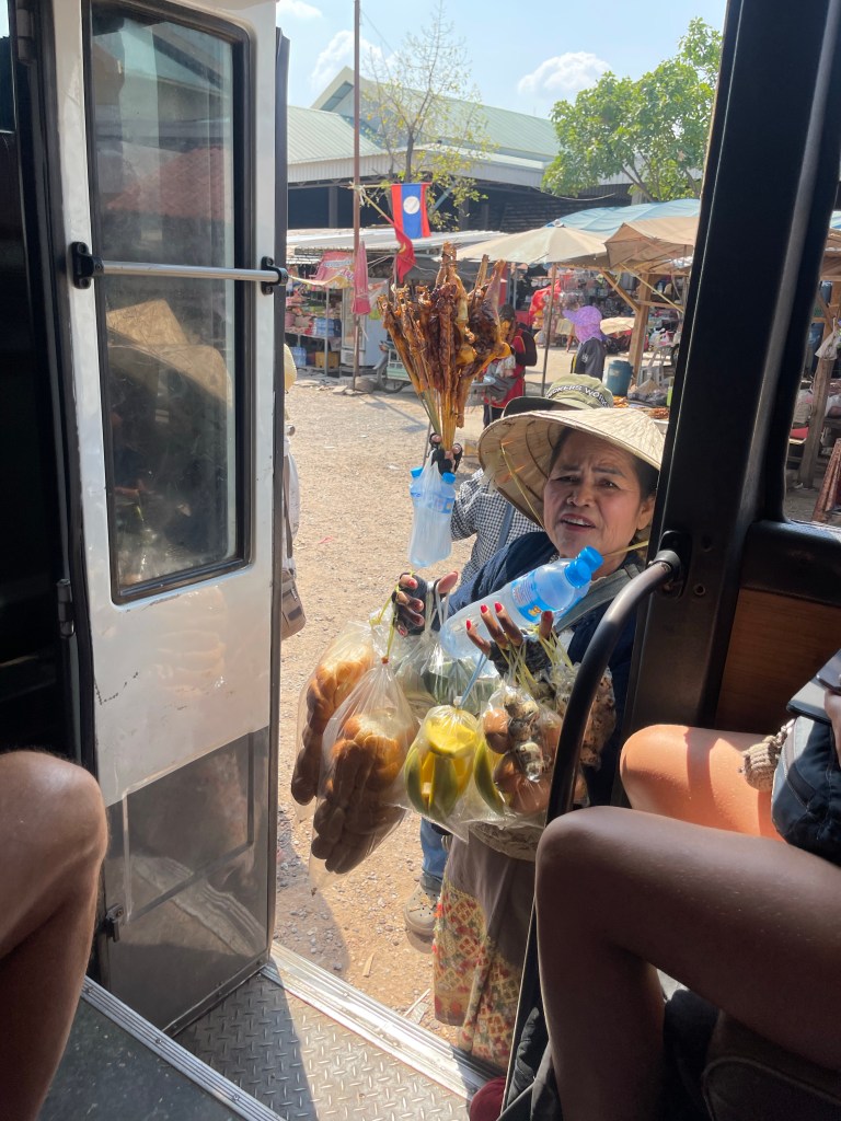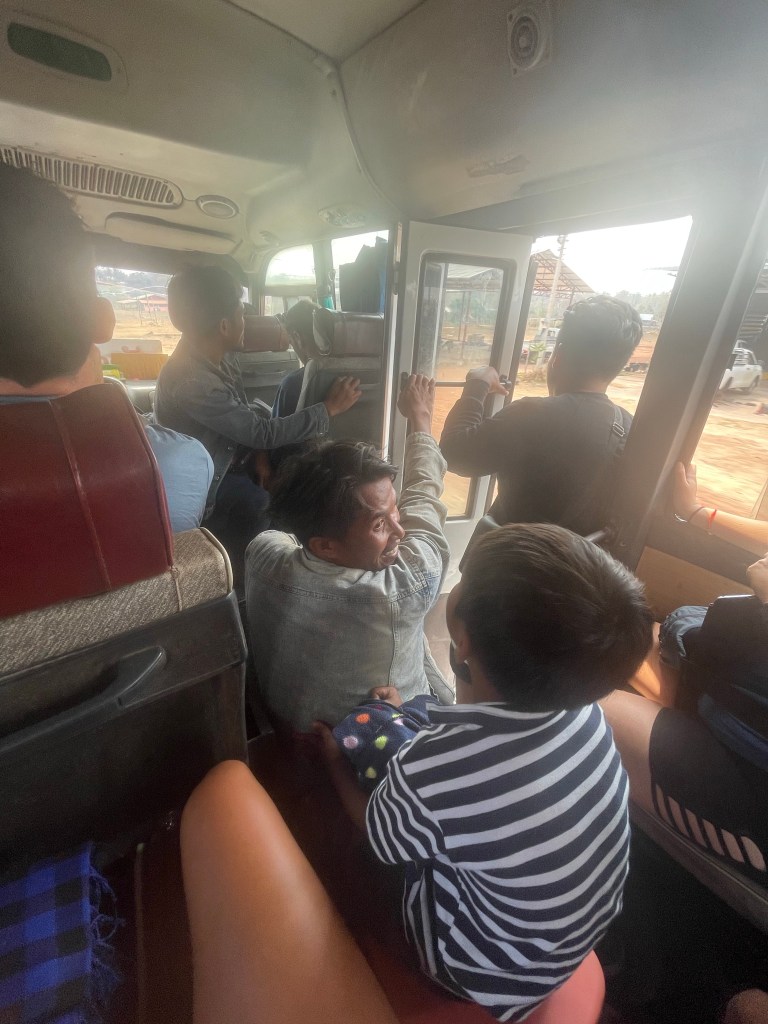 De Nederlanders achter ons vonden het maar een kamikazepiloot maar wij zijn blij want we komen na 6u ipv 8u aan op onze bestemming, Pakse.