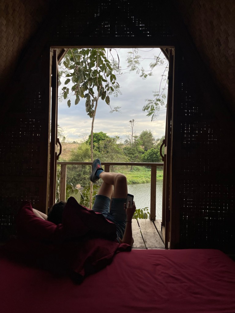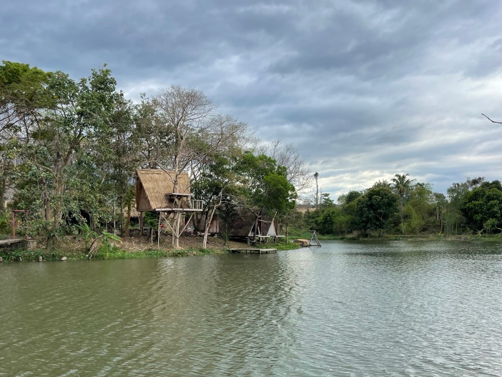 We arriveren op Fandee Island, een eco resort midden in een meertje. Wij slapen in de boomhut. Een zalig uitzicht, door ons vroege arriveren hebben we hier alsnog die paar uurtjes rust. Het resort wordt gerund door een Fransman. Naast echte Franse keuken kent de man ook zijn prijzen. We houden het bij de Laotiaanse gerechten op een apero met toast en comté en een pastis na.