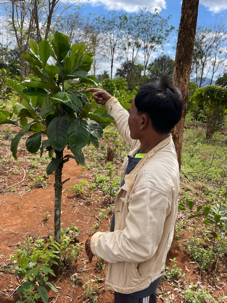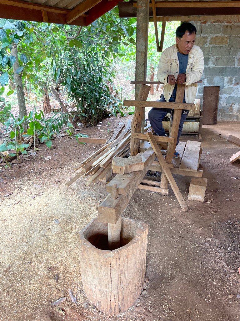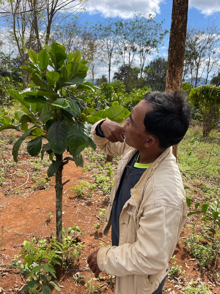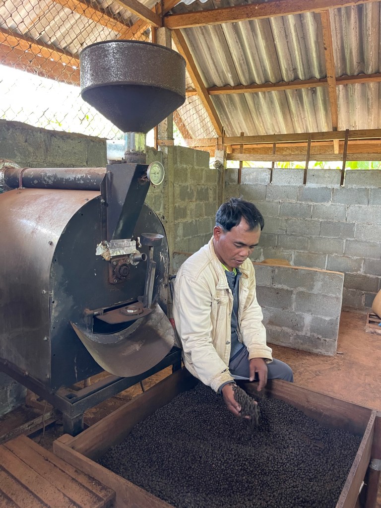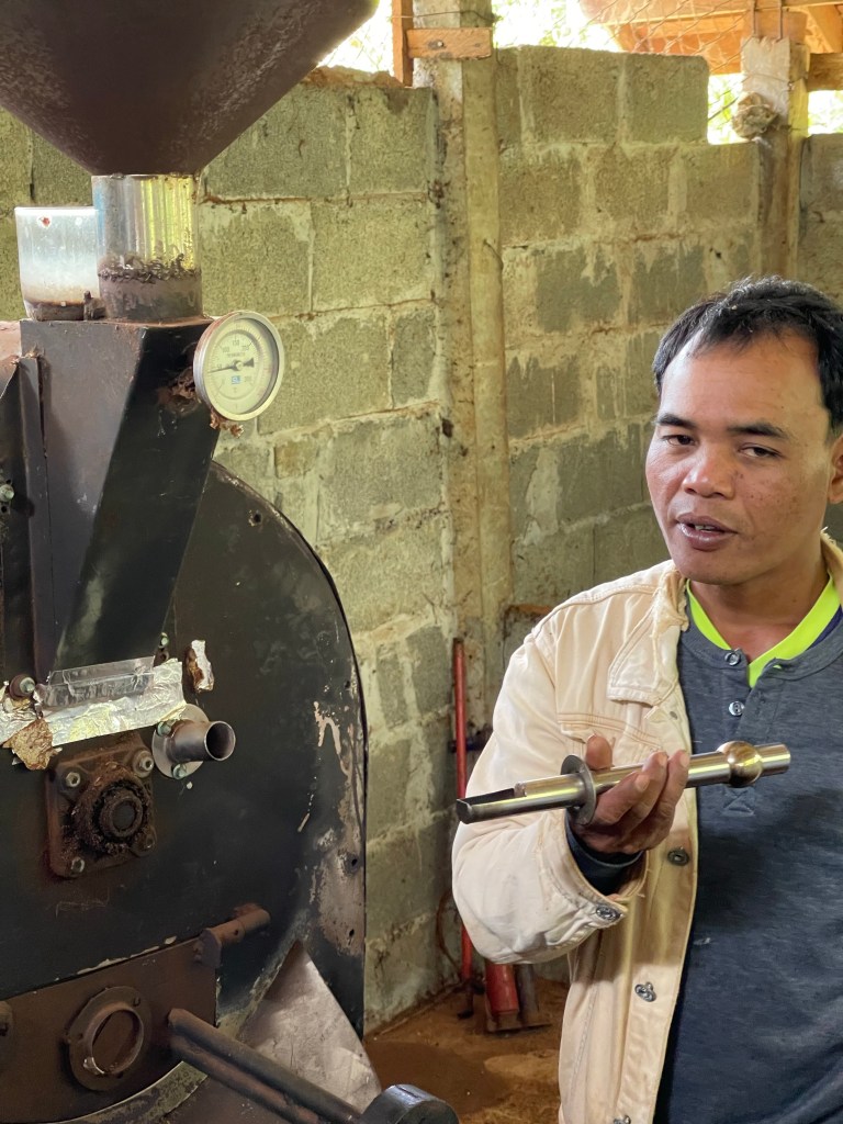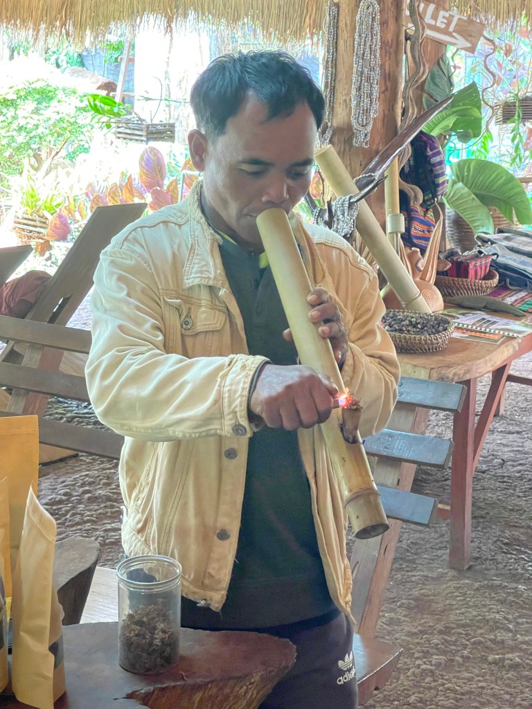 Na het ontbijt vervolgen we onze route. We bezoeken Mr. Vieng. Wat een geweldige en gepassioneerde man. We komen alles te weten over koffie, maniok, hoe rode mieren smaken (naar limoen dus) en dat je van de gedroogde bloemen van de koffie boom niet alleen thee kan maken maar dat je deze ook kan roken. Een aanrader voor al wie hier ooit in de buurt komt!
