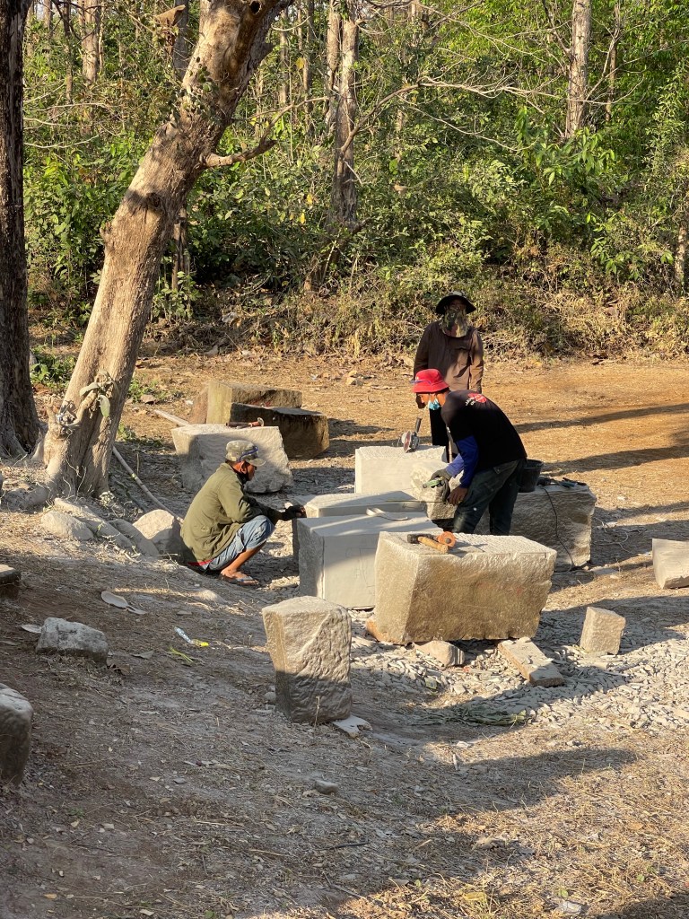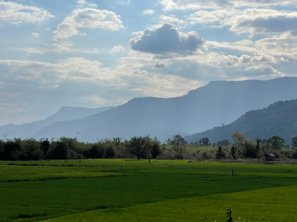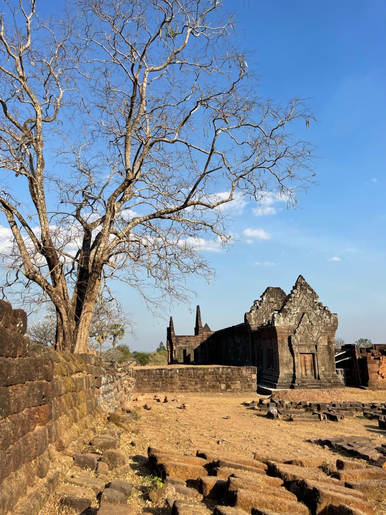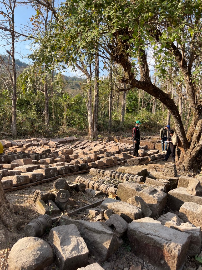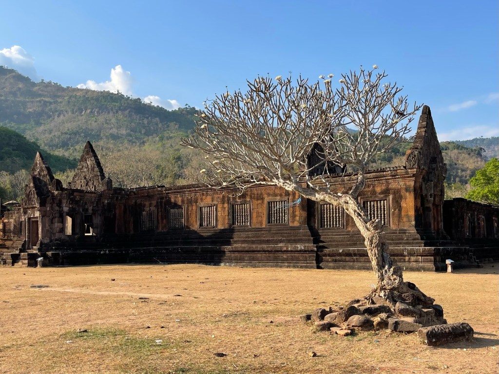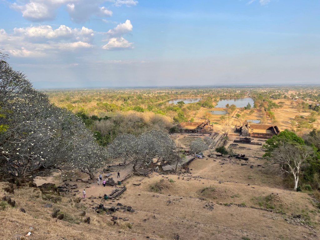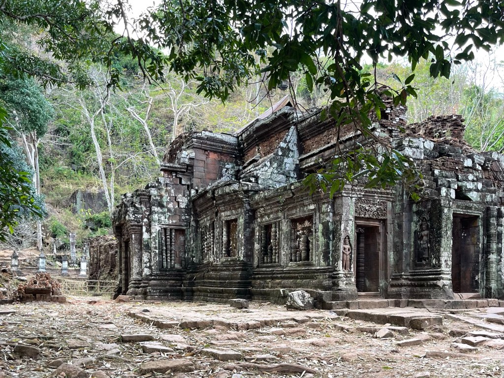 Na Mr. Vieng rijden we naar Vat Phou, een Angkoriaanse ruïne van een stad- en tempelcomplex van het rijk van de Khmer uit de 9de eeuw. Een immense site tegen een bergflank aan. Best indrukwekkend en de moeite om te bezoeken. Ze zijn ook volop bezig met de renovatie dus hij gaat alleen maar mooier worden. En het landschap is hier ook meer ons ding.