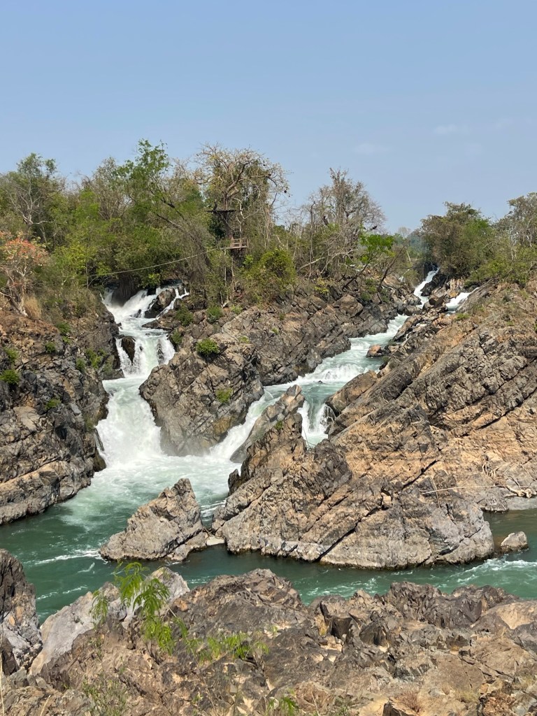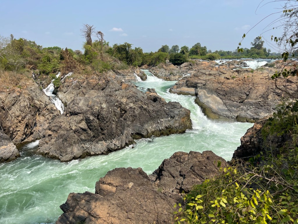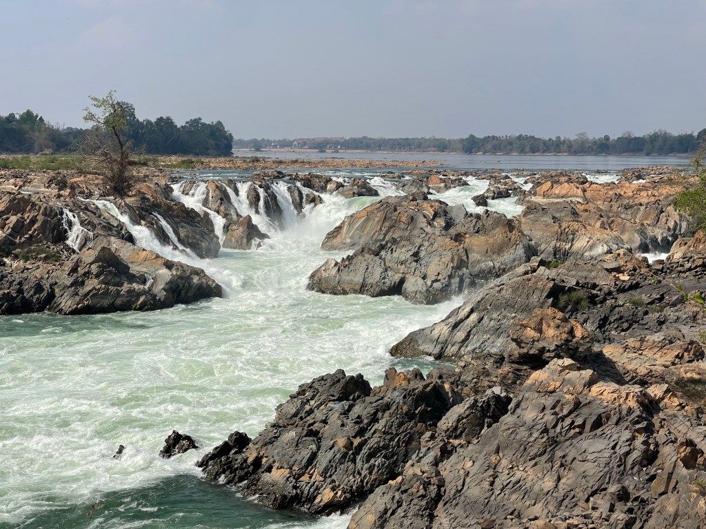 Maar het einddoel ziet er op foto veelbelovend uit. Voor we ons naar het eiland waar we slapen (Don Khon) begeven rijden we eerst een stukje verder door om de Khone Phapheng Waterval te bezoeken.