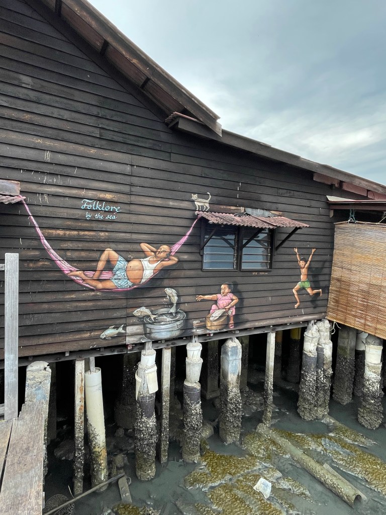 We eindigen de dag met de ‘Jetty’s’, paalwoningen op het water. Chinese clans wonen hier nog steeds. Een klein belastingsparadijs zo blijkt want de huizen staan niet op het vasteland maar op zee. Ttz…de meeste Jetty’s staan in het slib. Een vettig boeltje met bijhorende geur en muggen. Dat laatste buiten beschouwing gelaten wel charmant. 😅